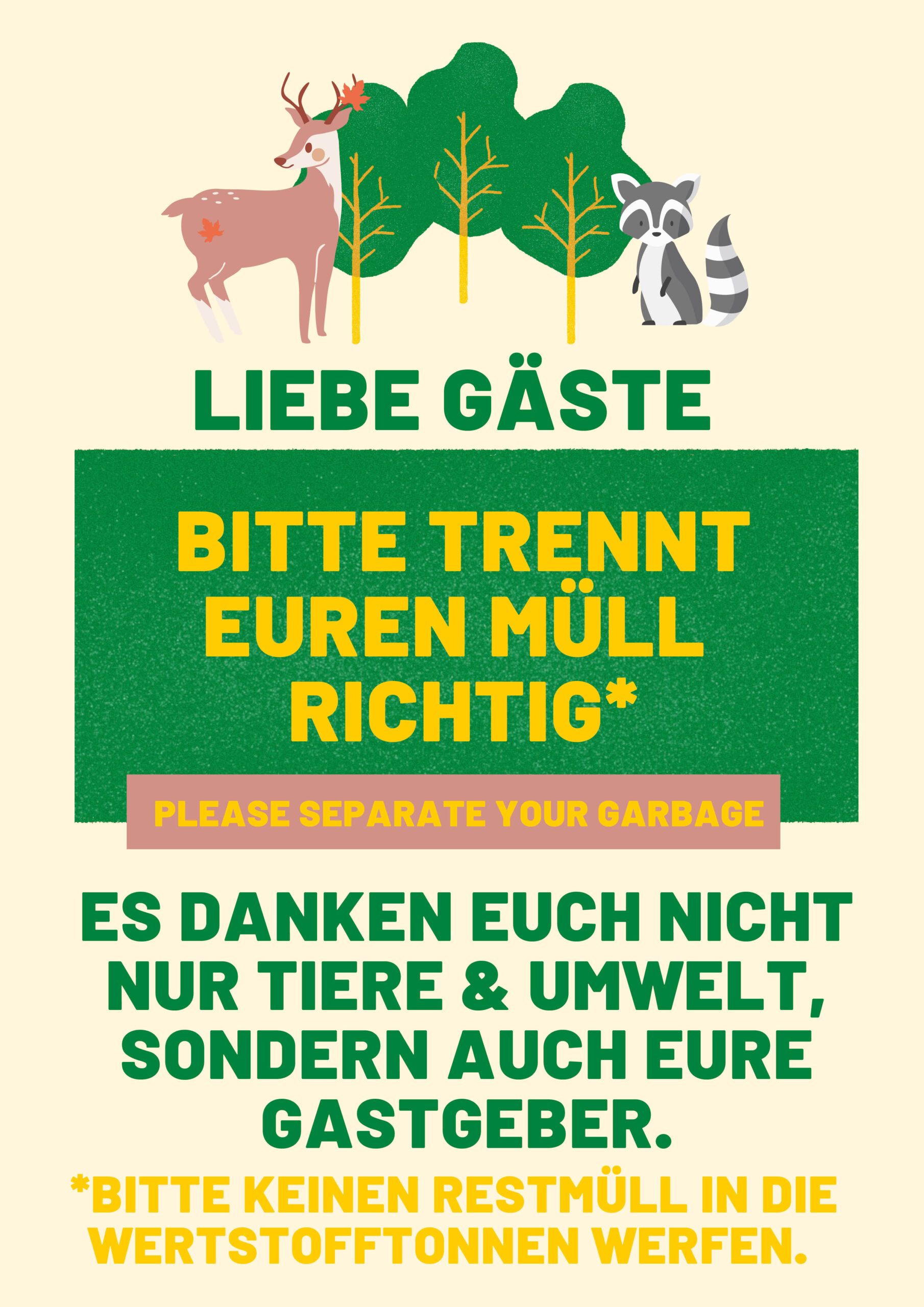 Um die Mülltrennung zu unterstützen wurde im Rahmen der Whats App Gruppe ein Entwurf für Schilder an den Müllplätzen gefertigt. Dieser wurde durch Gruppenmitglieder akzeptiert, finanziert und mittlerweile sind die Schilder in allen Dörfern angebracht.